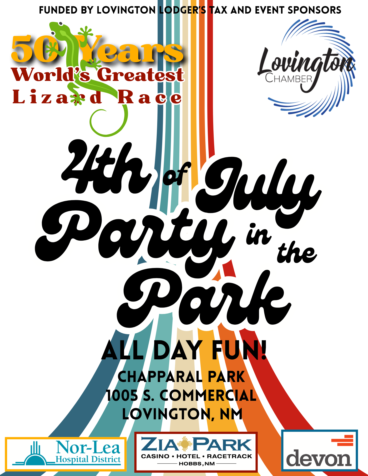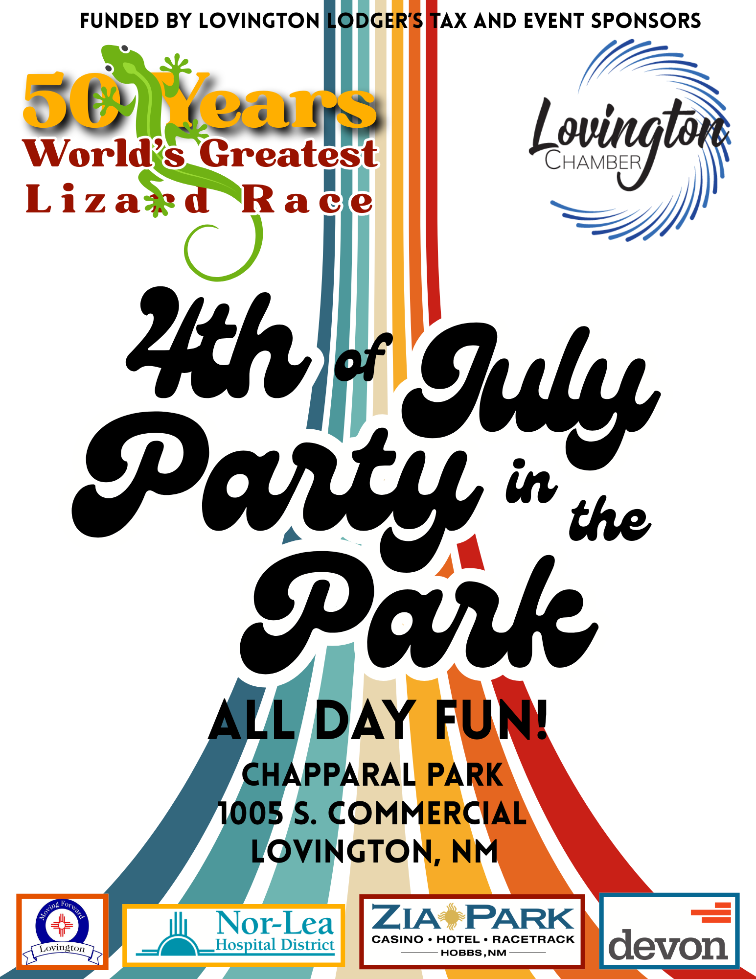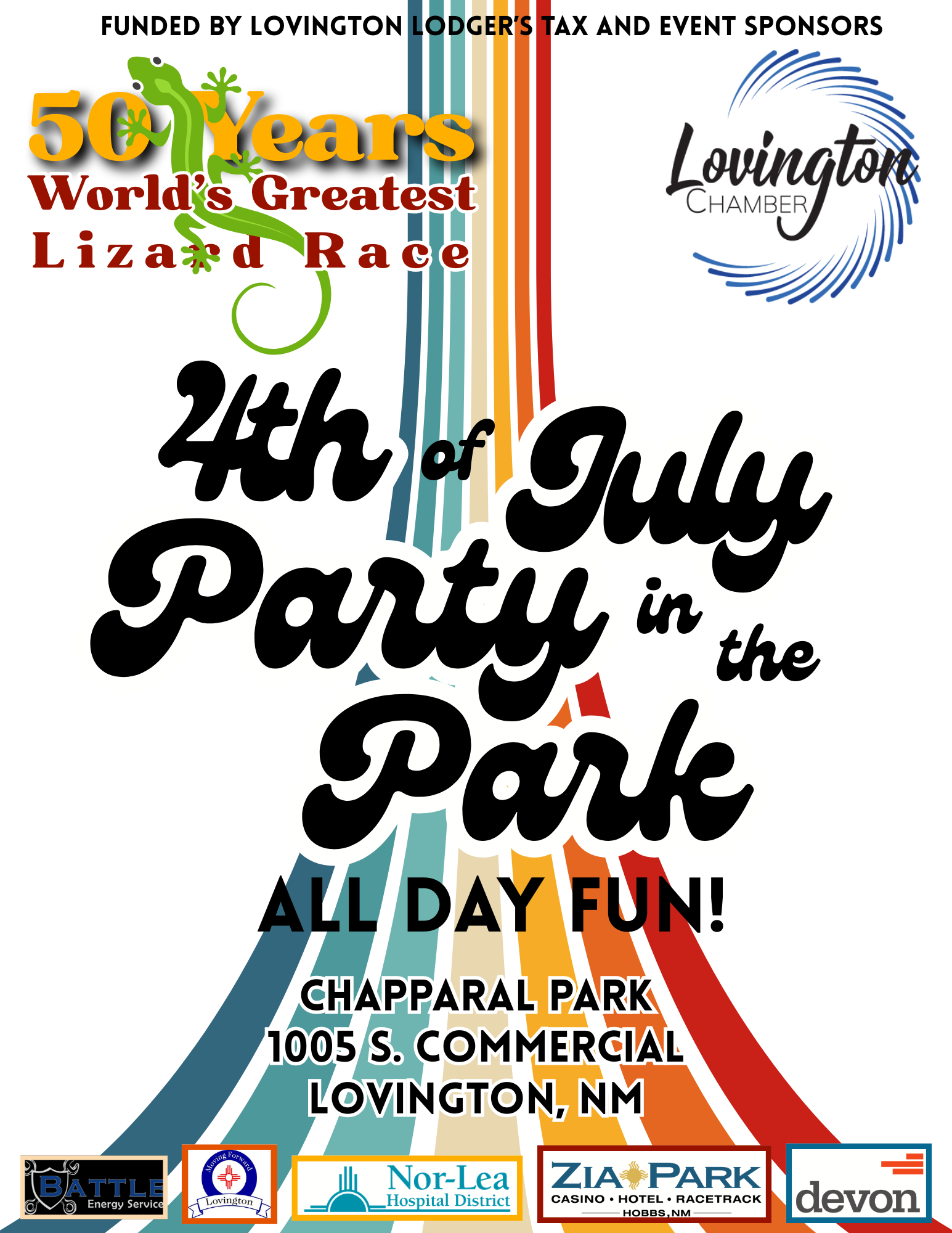 🦎 Join us for Lovington’s 4th of July Party in the Park as we celebrate 50 YEARS of the World’s Greatest Lizard Races! 🎉